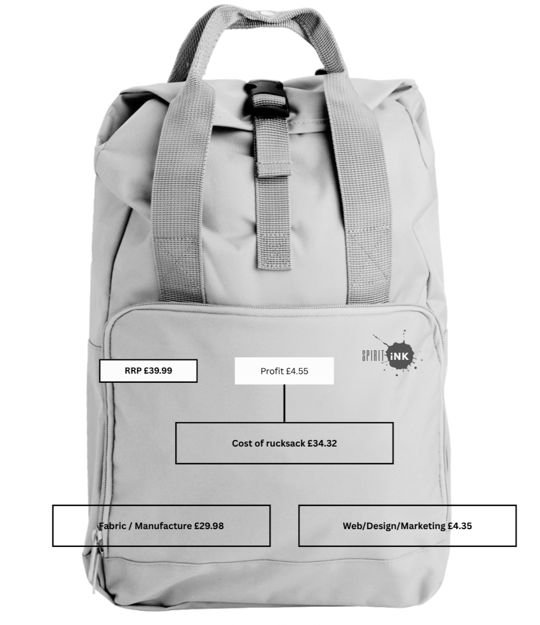 We start with the supplier’s base price—for example, a t-shirt that costs us £8.65. We then add a service fee that covers our costs such as website maintenance, transaction fees, product development, and salaries. This fee also allows us to maintain a modest profit so we can continue investing in our mission to support schools.